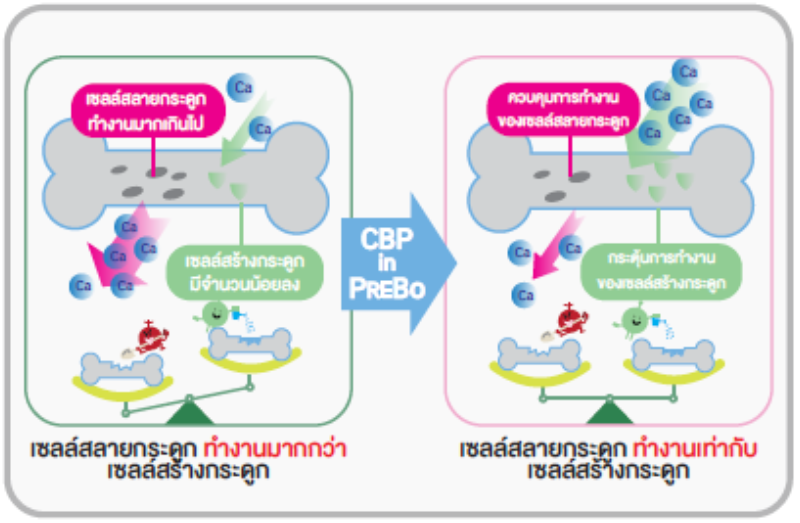 - PreBO ผลิตภัณฑ์โภชนเภสัชเพื่อสุขภาพกระดูก ใน 1 เม็ดมี CBP เทียบเท่ากับการดื่มนมถึง 53 ลิตร! แถมด้วยสารอาหารสำคัญสำหรับกระดูก ได้แก่ กระดูกอ่อนปลาฉลาม (Shark Cartilage powder), วิตามินซี และวิตามินดี ช่วยเสริมสร้างกระดูกและฟัน