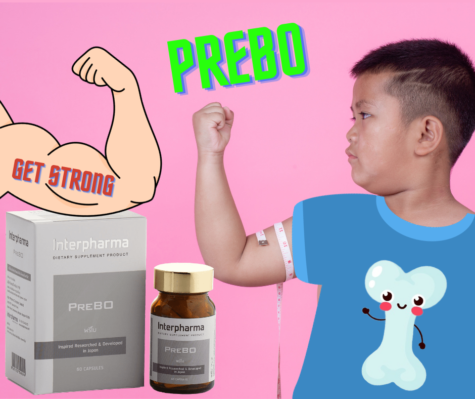 - วัยเด็ก ทาน PreBO วันละ 1 เม็ด ช่วยเสริมการเจริญเติบโตของกระดูก เสริมการเพิ่มส่วนสูง